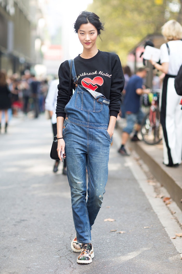 | Ji Hye Park lại đáng yêu cùng chiếc quần jeans yếm cùng đôi giày sneaker họa tiết độc đáo. |