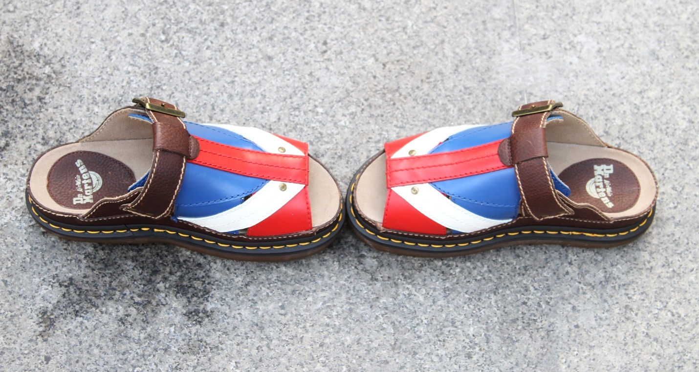 | Khi ghép 2 đầu mũi dép Dr lại với nhau, biểu tượng quốc kỳ nước Anh thể hiện rất rõ. |