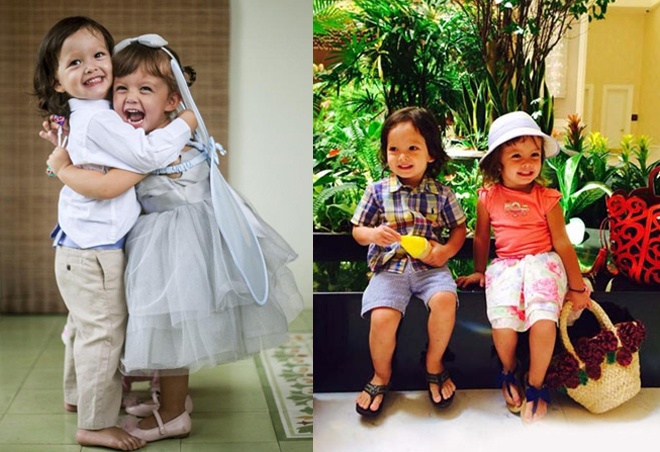 | 3. Tôm và Tép nhà Hồng Nhung. Cặp sinh đôi đáng yêu mang 2 dòng máu Việt – Mỹ của Hồng Nhung cũng thu thập được cảm tình của fan hâm mộ không khác gì bà mẹ diva làng nhạc Việt vốn rất nổi tiếng của mình. |
