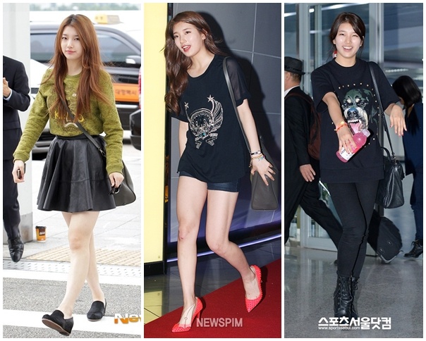 Cá tính, hiện đại khi xuống phố: Gắn liền với hình ảnh nữ tính nhẹ nhàng tại sự kiện, song ở đời thường Suzy rất chuộng phong cách cá tính, mạnh mẽ và có phần tomboy. Hình ảnh đối lập này tạo nên sự mới mẻ cho hình tượng đáng yêu của người đẹp.