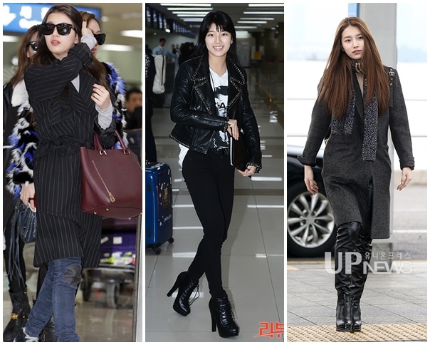 Trang phục của Suzy được chú trọng ở tông màu đơn sắc, tối giản. Người đẹp thích diện màu trắng đen khi xuất hiện trước báo giới và công chúng.