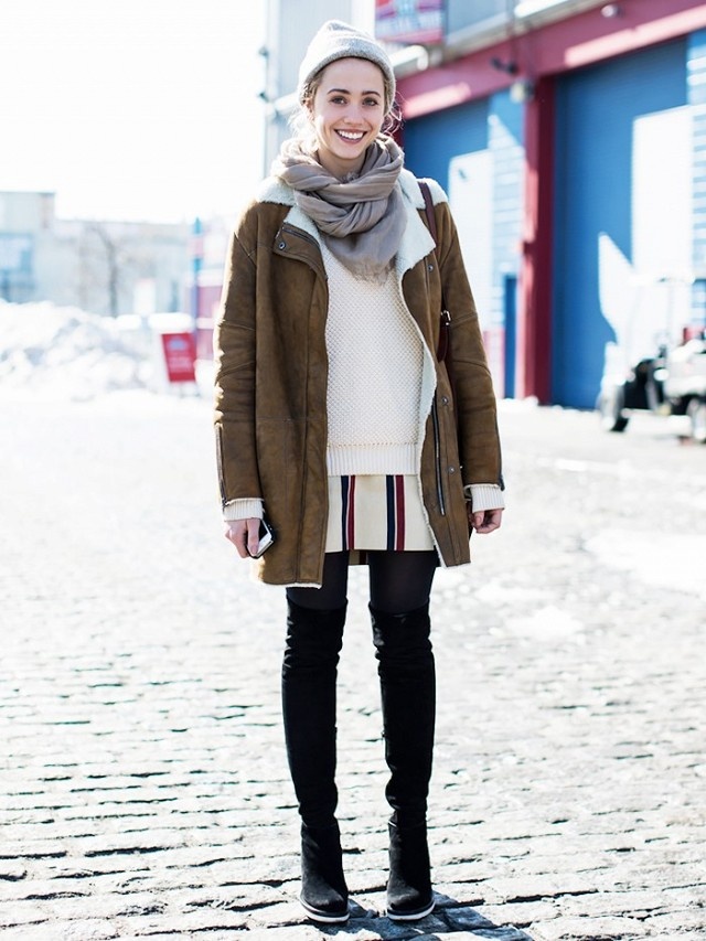 Nếu bạn thích sự trang nhã, có thể sử dụng áo khoác lông và áo len cao cổ. |