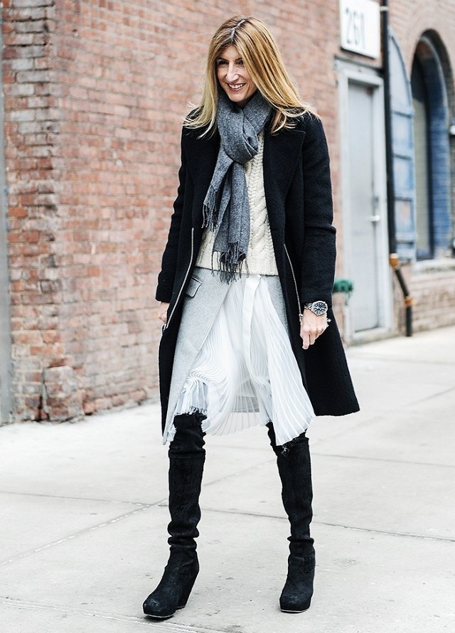 Một chiếc bốt cao cổ sẽ tạo điểm nhấn thú vị cho set đồ với váy, áo len và áo choàng đơn điệu. |