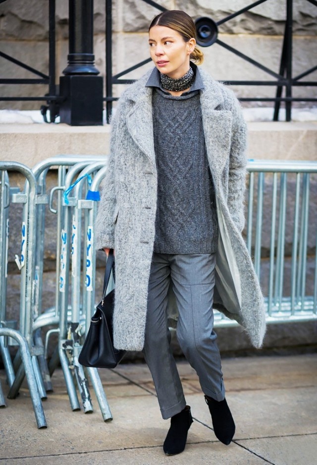 Sự kết hợp layering với cùng tông màu xám cũng là gợi ý cho những cô nàng yêu thích vẻ đẹp cổ điển. |