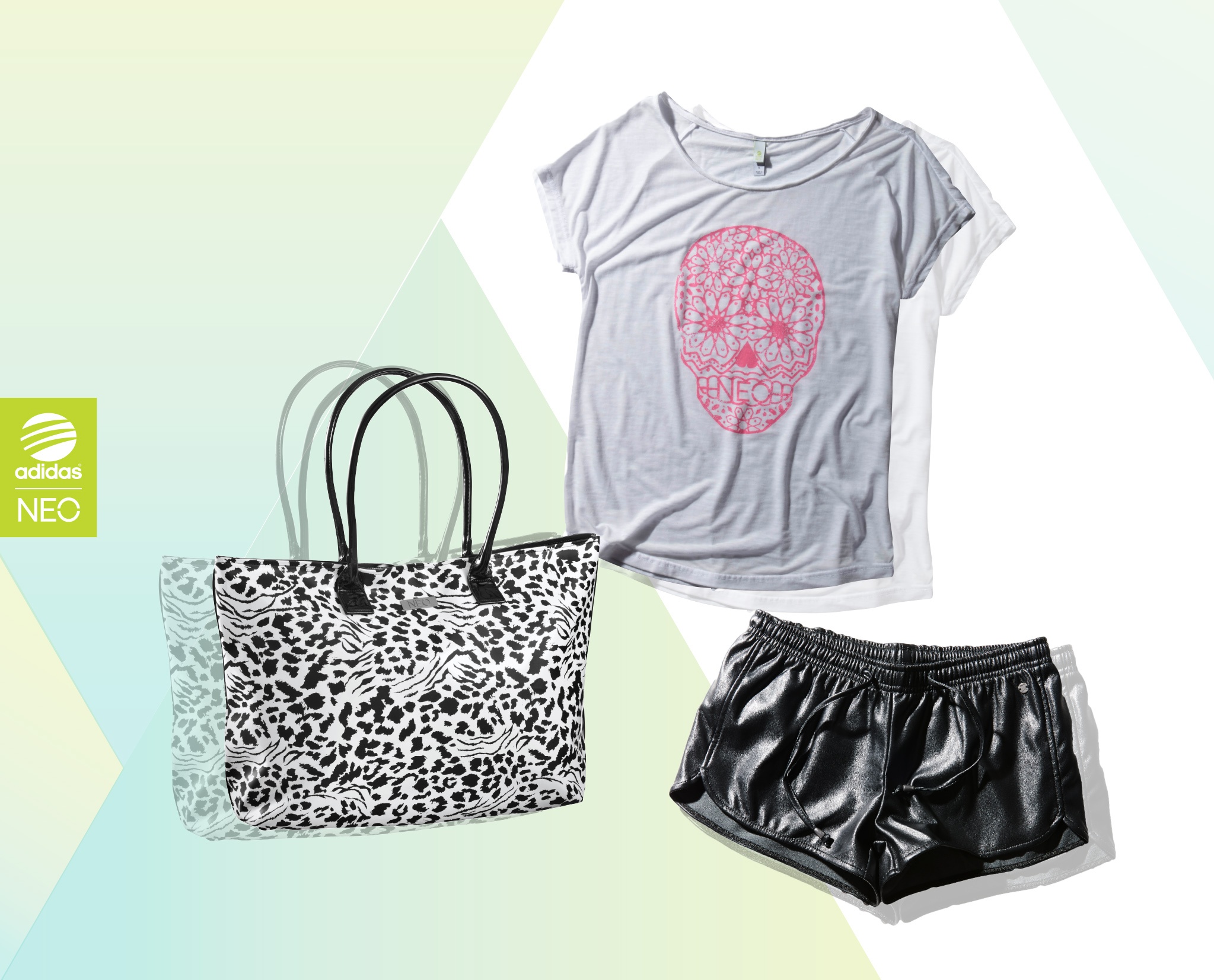 | Vào một ngày thu nắng đẹp, bạn sẽ vô cùng trẻ trung và đáng yêu khi đi dạo trên phố với chiếc áo thun chất đẹp của adidas NEO, kết hợp cùng quần soóc ngắn da màu đen và chiếc túi xách to bản họa tiết đen trắng. |