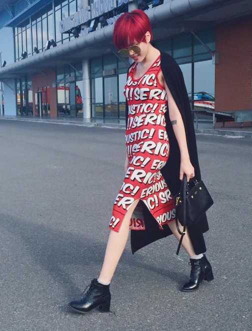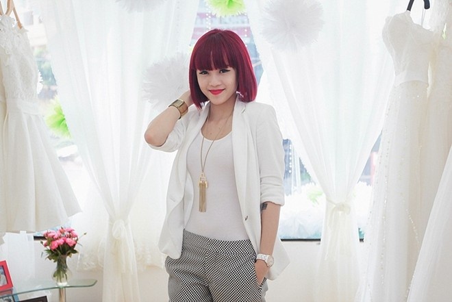 | Phong cách thời trang tomboy cùng mái tóc đỏ là điểm nổi bật của Thiều Bảo Trâm. Quần ống rộng màu sặc sỡ kết hợp sơ mi là những kiểu trang phục được Thiều Bảo Trâm ưa thích. |
