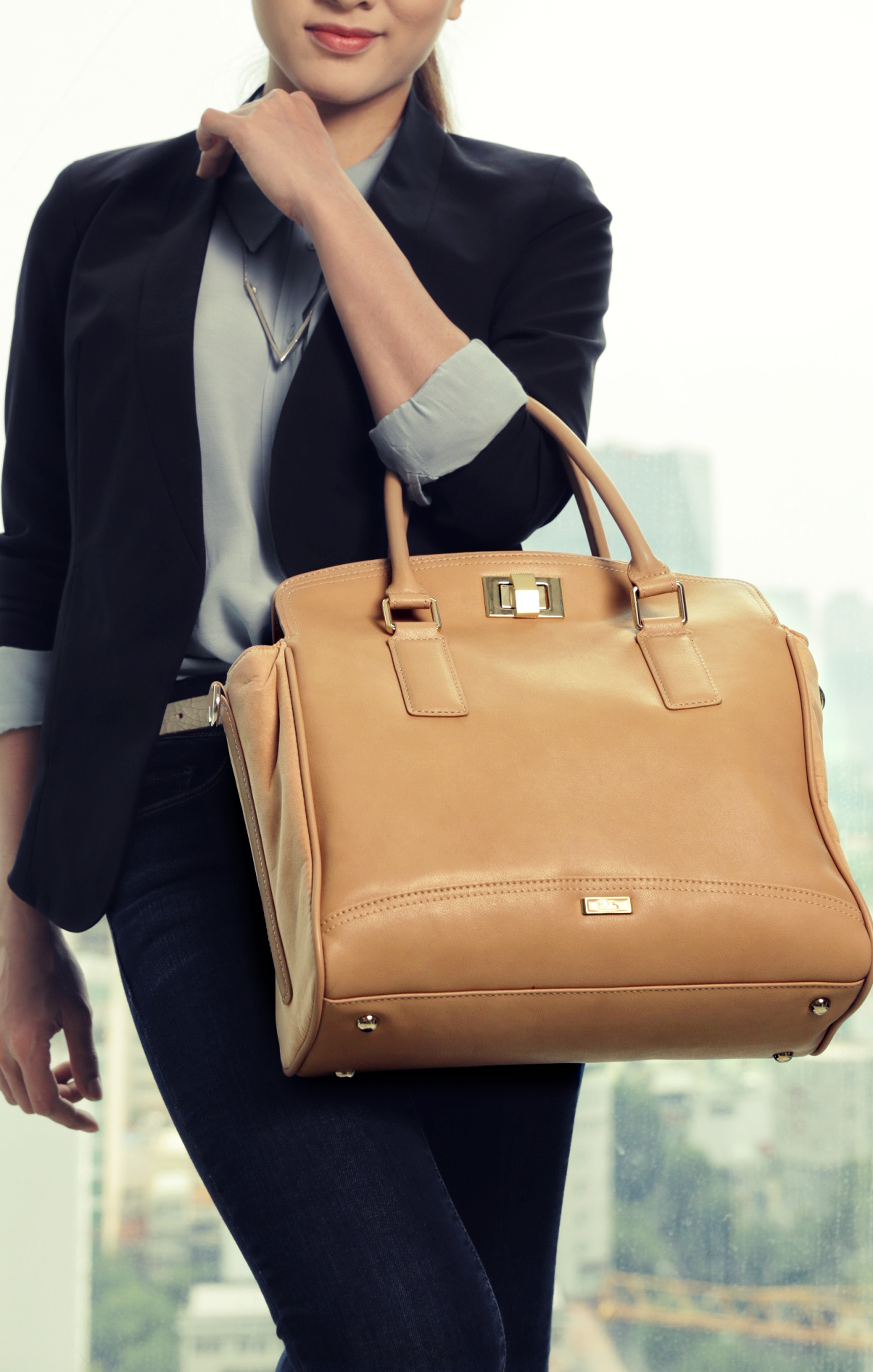 Để tự tin sánh đôi cùng nàng, chàng chọn cho mình vest lịch lãm nhưng không bao giờ lỗi mốt, đồng hành cùng chiếc túi có thiết kế gần giống với chiếc túi nàng đang sở hữu. Cả hai đều chọn cho mình phong cách công sở tinh tế và sành điệu.