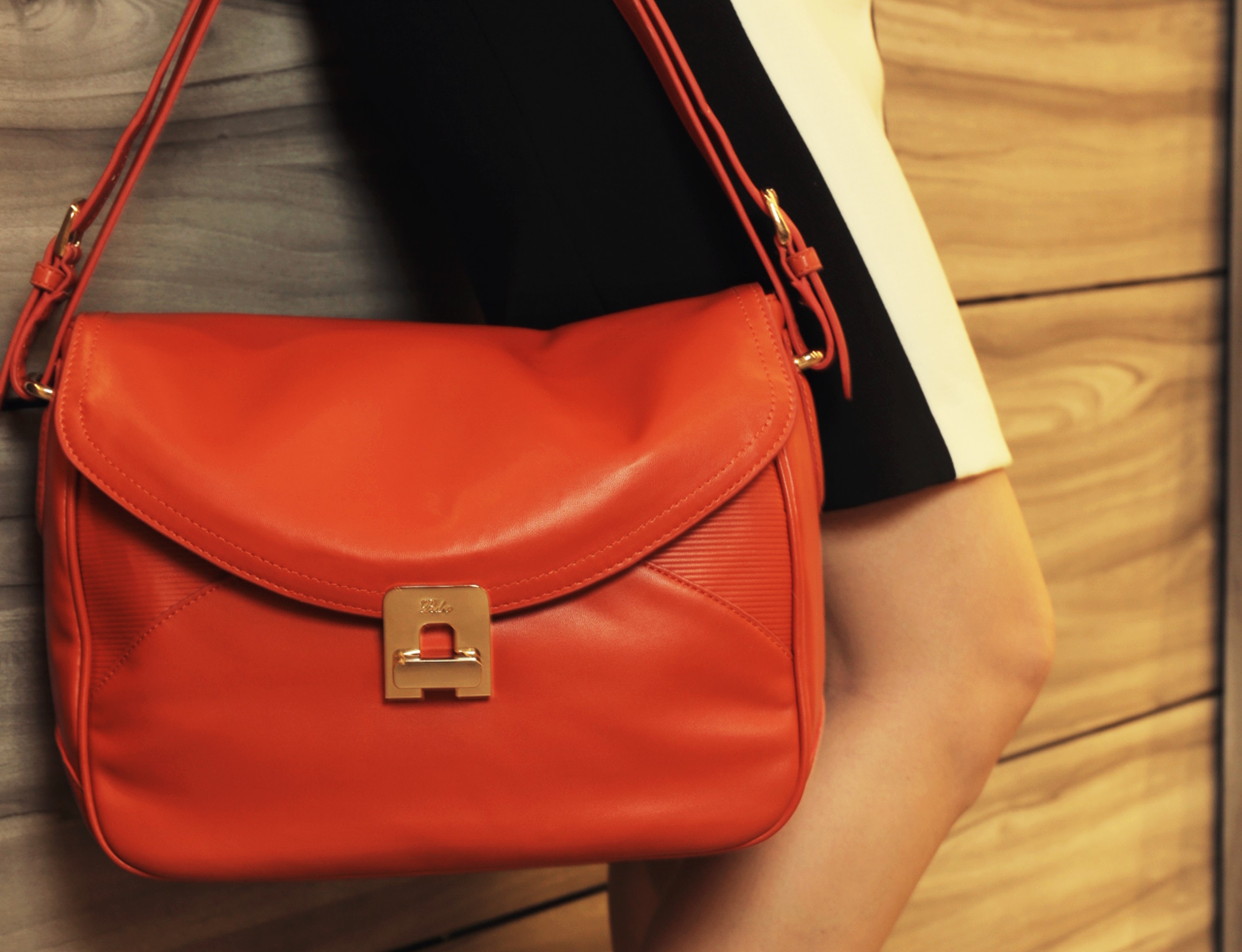 Đầm ôm thanh lịch, giày pump với gót cigarette bọc kim loại cá tính ton sur ton với đầm và túi xách, nàng sành điệu đã sẵn sàng dạo phố cùng chàng trai lịch lãm với giày Loafer màu đen bóng bẩy khéo léo viền thêm một chút cam nóng bỏng, tạo nét “bụi bặm” cho trang phục của mình. Đồng hành cùng túi xách da bản to thiết kế đơn giản nhưng vẫn thể hiện được gout cực chất