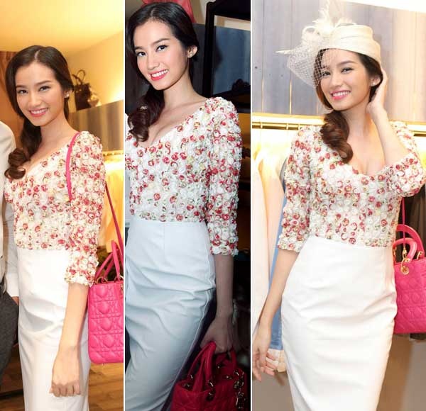 | Đôi khi cô lại thay đổi phong cách sang trọng, yêu kiều trong bộ váy ren nhã nhặn cùng tóc vấn cao và gương mặt trang điểm son môi đậm đà. |