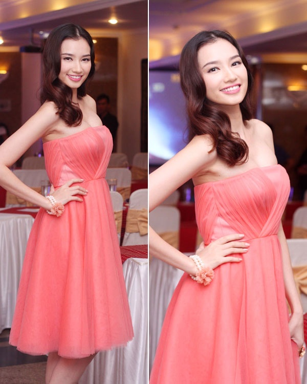 | Trúc Diễm cũng là người đẹp tỏ ra thích gam màu đỏ đằm thắm. Chiếc đầm quây bó này cũng giúp cô khoe được ưu điểm muốn khoe trên cơ thể đó là vóc dáng vừa mắt. |