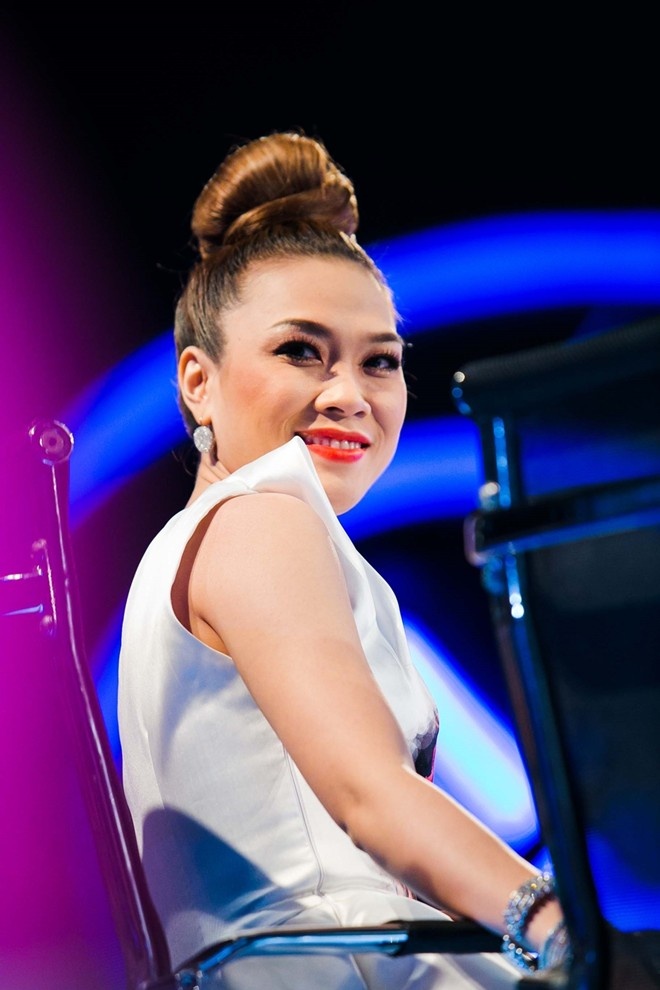 Kiểu tóc búi cao cũng khiến Mỹ Tâm lộ nhược điểm gương mặt to.