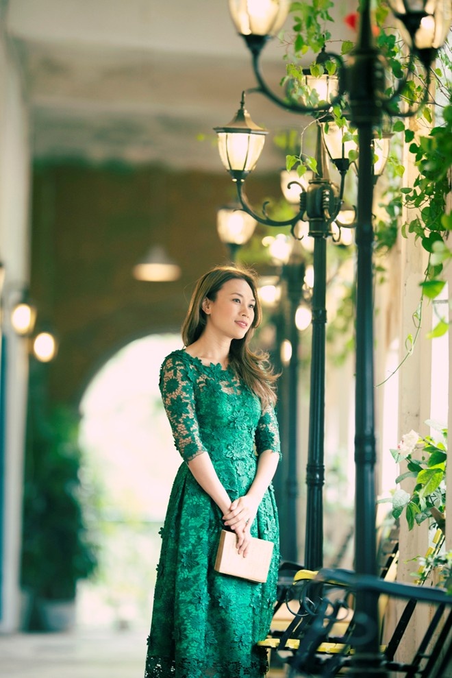 Một lựa chọn rất nền nã của Mỹ Tâm với chất liệu ren và màu xanh ngọc hợp mốt.