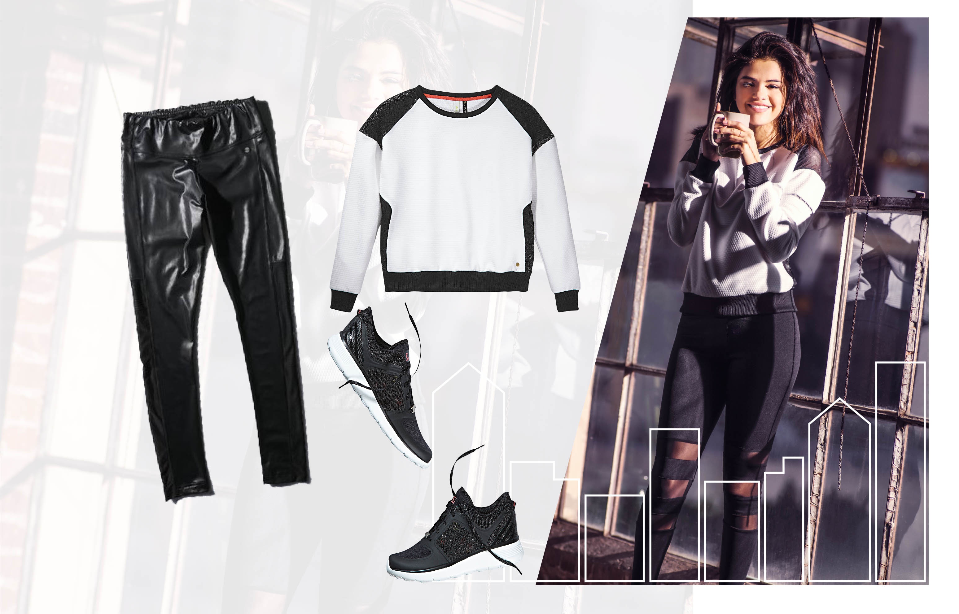 | Selena Gomez biến những trang phục thường gặp ở phòng tập gym như áo hoodies quần track pant, áo khoác bomber thành các set thời trang đường phố trẻ trung, ấn tượng. Chia sẻ về phong cách này, cô nàng cho biết: “Tôi rất hào hứng khi tiếp tục cộng tác với NEO. Họa tiết hoa và sắc màu color block là những món đồ bất cứ bạn nữ nào cũng cần phải có trong mùa xuân hè này". |