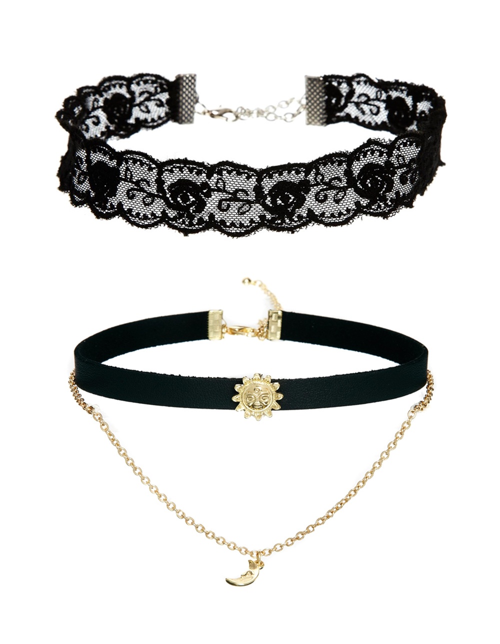 Vòng cổ chunky choker: Những mẫu vòng cổ ngắn, to bản, đính đá, hạt nhìn có vẻ hầm hố hóa ra lại thích hợp khi mặc với áo sơ mi, hoặc tô điểm cho phần cổ áo trơn tròn. |
