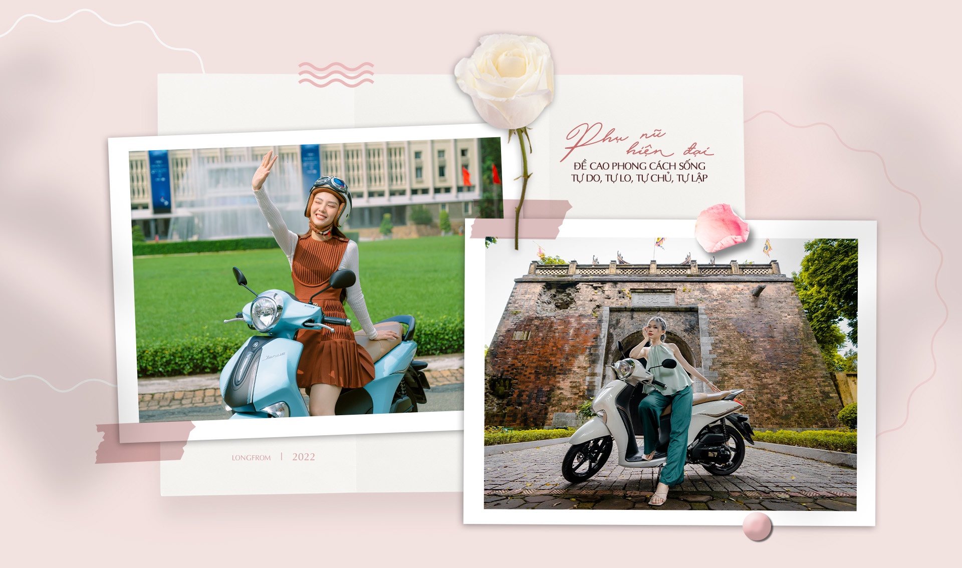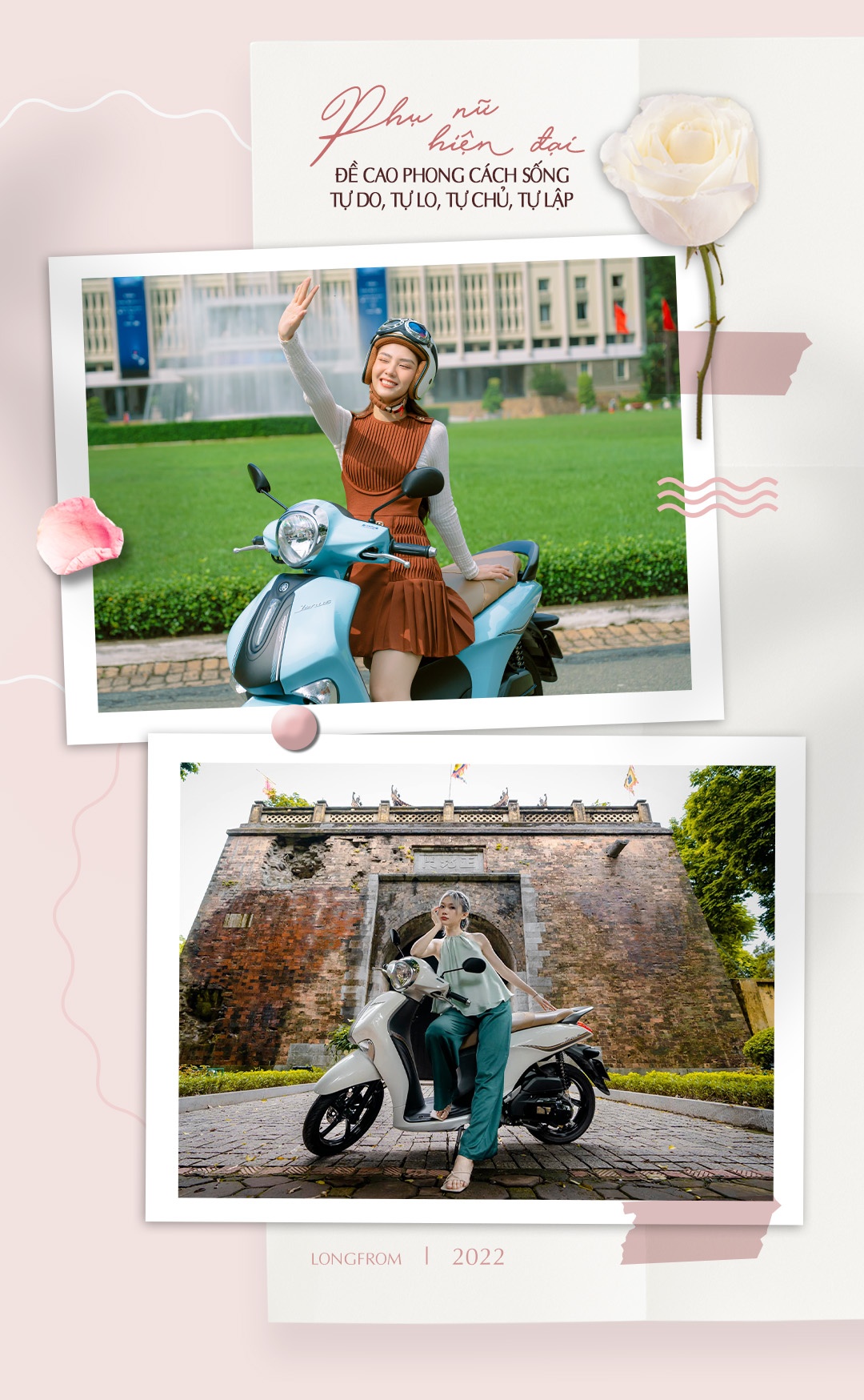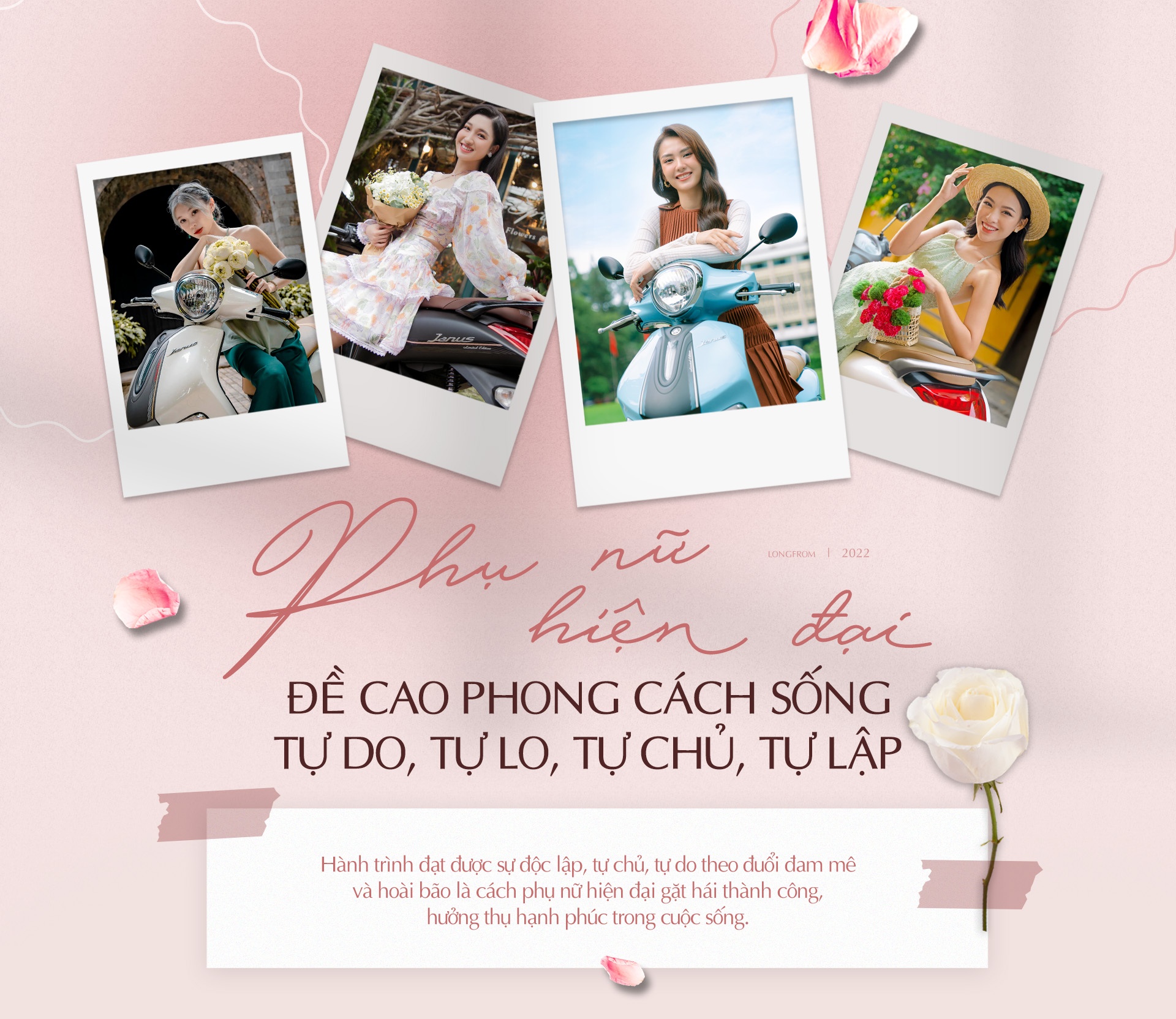 Tự do, phóng khoáng, mạnh mẽ nhưng không thiếu đi nét nhẹ nhàng, nữ tính, đó là vẻ đẹp của người con gái Việt Nam hiện đại. Đây cũng là hình tượng Yamaha muốn gửi gắm đến khách hàng qua thông điệp "Bật chất J, Đẹp - Độc - Đỉnh", đặc biệt khi ngày Phụ nữ Việt Nam 20/10 tôn vinh phái đẹp đang đến gần. Với Yamaha Janus, các nàng như có thêm một "đồng minh", trợ thủ đắc lực trên con đường đi tới “hạnh phúc đích thực” để tìm kiếm sự độc lập, tự chủ và tự do.