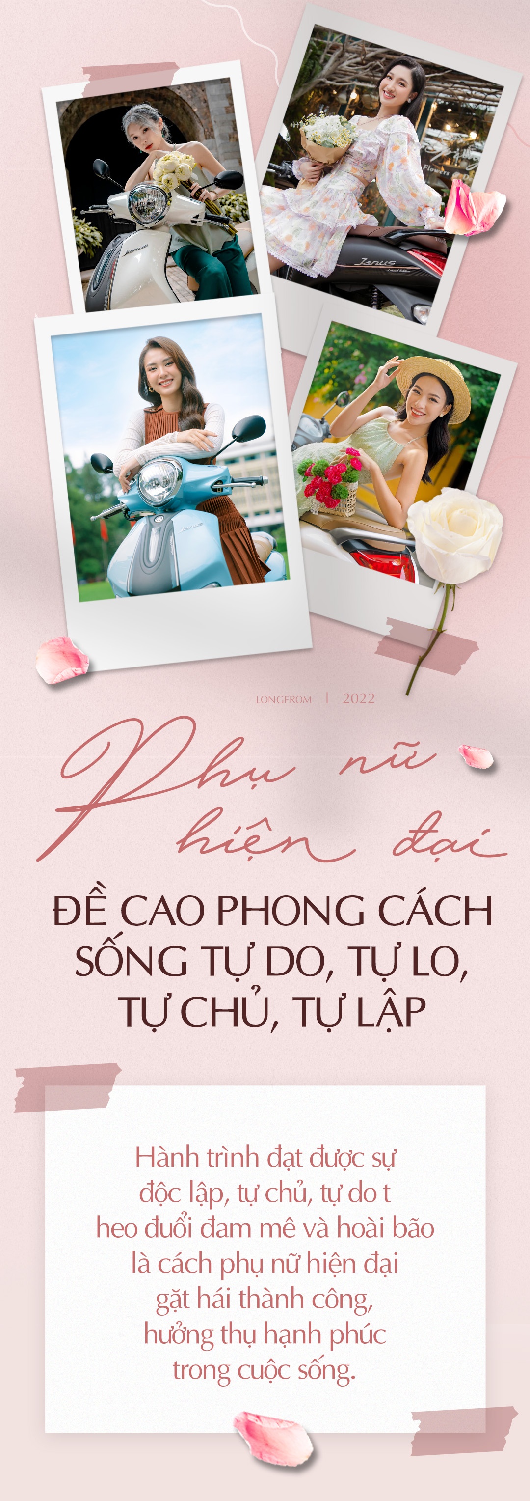 Nếu trước đây, hình tượng về một người phụ nữ lý tưởng gói gọn trong 4 chữ "công, dung, ngôn, hạnh", thì ngày nay, giới trẻ hiện đại lại đề cao 4 chữ "tự" - tự lo, tự lập, tự chủ và tự do. Nhờ chữ "tự", phụ nữ không chỉ khẳng định vai trò và tầm ảnh hưởng trong cuộc sống, mà còn biết cách yêu thương và chăm sóc bản thân.