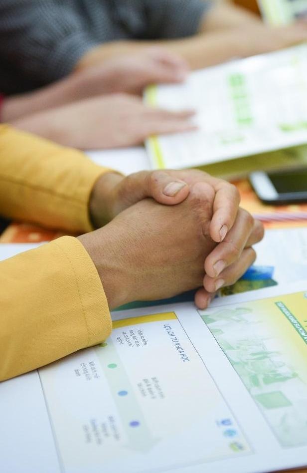 | Trong bữa cơm tối với con trai, tôi hào hứng kể con nghe về buổi tập huấn sôi nổi ngày hôm nay. Tôi cũng không quên nói về dự định tập trung chị em trong thôn để truyền đạt lại cho họ nghe những điều đã học hỏi được. |