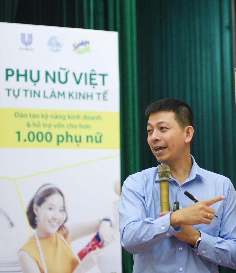 | Buổi học có sự xuất hiện của giảng viên kinh tế đến từ nhãn hàng Sunlight, Unilever Việt Nam. Nội dung giảng dạy chính là cách thức giúp phụ nữ làm kinh doanh và tập huấn mô hình phát triển kinh tế tại gia. Đây cũng là điều những chị em như tôi rất mong muốn tìm hiểu, đặc biệt khi kinh tế gia đình trở nên khó khăn hơn sau dịch bệnh Covid-19. |