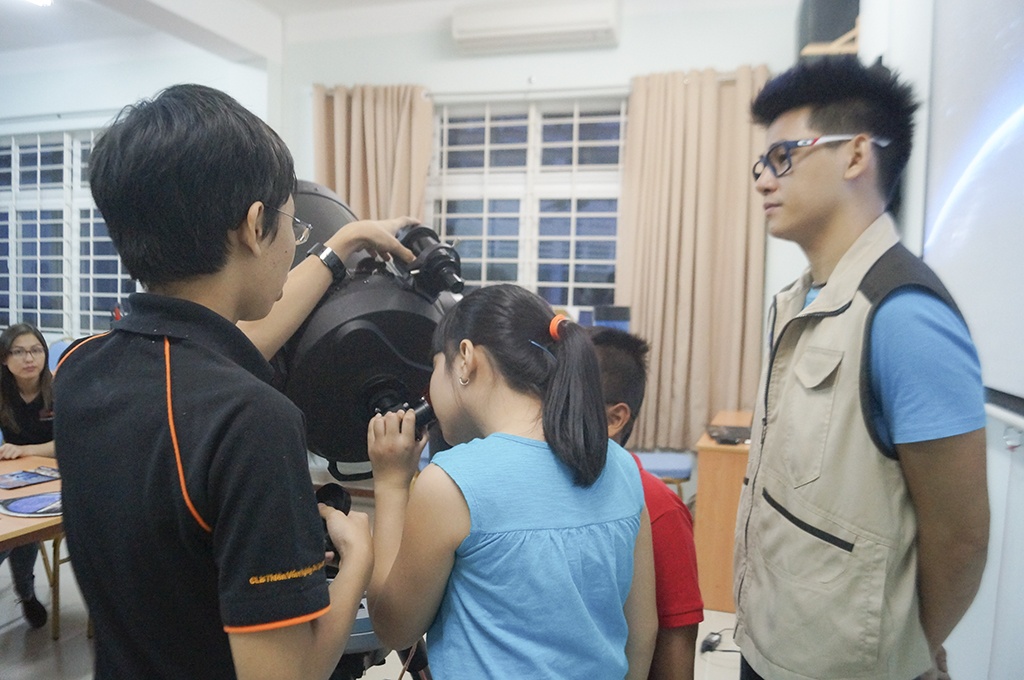| Cùng đồng hành trong ước mơ này còn có Vy Nguyên (học sinh lớp 5). Cô bé tuy tuổi còn nhỏ nhưng đã có tìm hiểu nhiều về thiên văn học và muốn biết sâu hơn nữa về bộ môn thú vị này. |