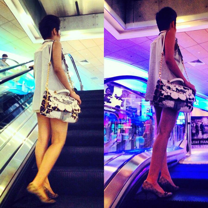 Cách chọn túi xách phối cùng trang phục rất phù hợp, kiểu túi cá tính với nhiều họa tiết.