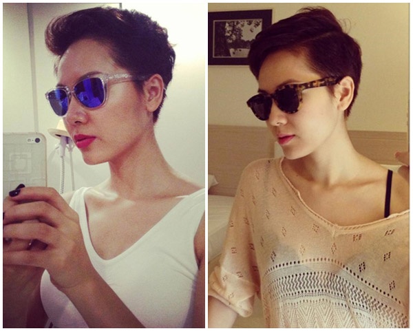 | Cùng một chiếc váy nhưng rất cá tính với kiểu tóc tém. |