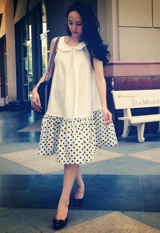 Phương Linh với phong cách nền nã khi có buổi gặp gỡ cuối tuần.