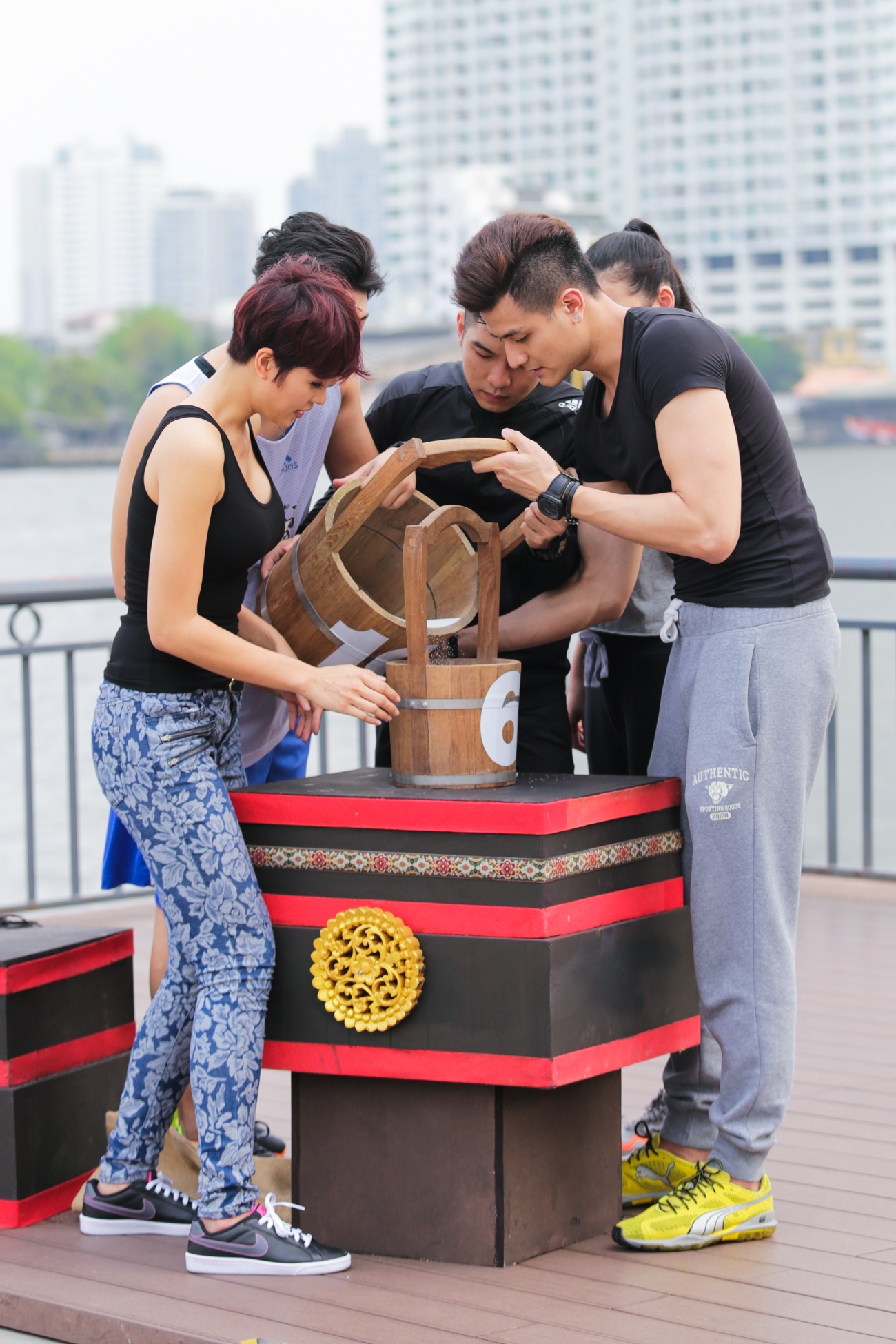 | Sau khi hoàn thành nhiệm vụ Biệt đội giải cứu, 12 thí sinh tiếp tục thử thách thứ hai đòi hỏi tinh thần đồng đội mang tên Trên đỉnh Bangkok - Giải mã thông điệp. Tất cả sẽ chia theo cặp để giải đáp nhanh câu hỏi MC Tim đưa ra. |