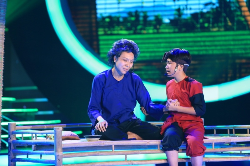 Trong khi đó, Khánh Ngọc - Gia Quý làm mọi người bật khóc trong trích đoạn cải lương Bên cầu dệt lụa với phiên bản gốc của NSƯT Thanh Sang. Giọng ca nhí vào vai Trần Minh, chàng trai nghèo hiếu thảo và người mẹ già giàu lòng tự trọng. Trần Minh đem lòng yêu tiểu thư nhà giàu nhưng bị cha cô là quan huyện ngăn cản vì không môn đăng hộ đối. |