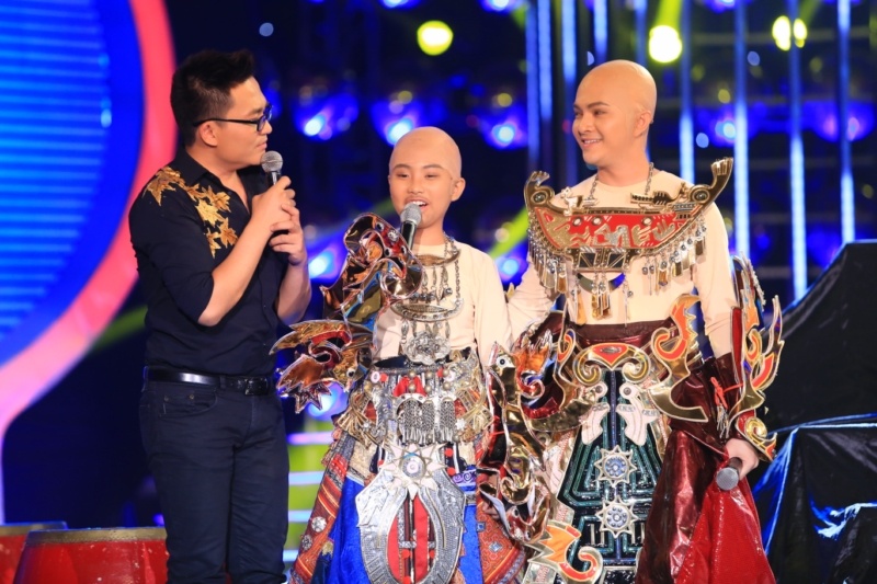 Nam Cường và học trò khiến nhiều người trầm trồ, suýt xoa vì trang phục hoành tráng, ấn tượng khi đóng giả Phan Đinh Tùng với ca khúc Hào khí Việt Nam. Nhưng vì bộ giáp và chiếc mũ quá nặng khiến cả 2 lơ là giọng hát. Mỹ Linh khéo léo khen ngợi sự hy sinh vì nghệ thuật của thầy trò. |