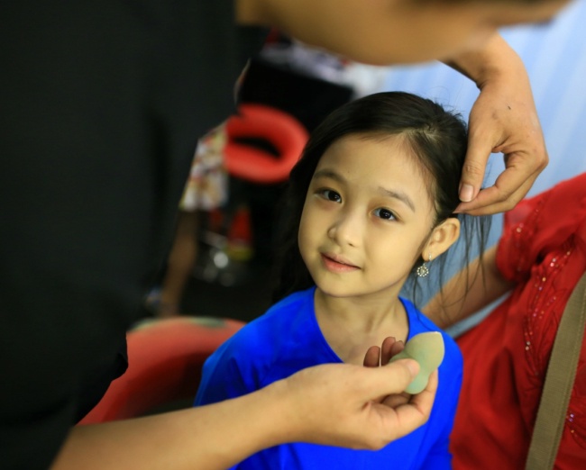 Cả 2 khá vất vả vì phải chuẩn bị công phu cho phần hóa trang và đạo cụ. “Chị Bảy” ngồi suốt mấy tiếng đồng hồ để ê-kíp phù phép thành đầu trọc. Đồng thời, Nam Cường và học trò phải mặc trên người những bộ giáp và chiếc mũ nặng gần 10 ký. Con nuôi Quang Lê tâm sự, tiết mục này khiến cô bé gặp nhiều khó khăn nhưng với tinh thần học hỏi, Mỹ Chi thể hiện rõ nét thần thái của Phan Đinh Tùng. Chứng kiến nỗ lực của cả 2, Hoài Linh khen ngợi Phương Mỹ Chi và Nam Cường “có tinh thần hy sinh vì nghệ thuật”.