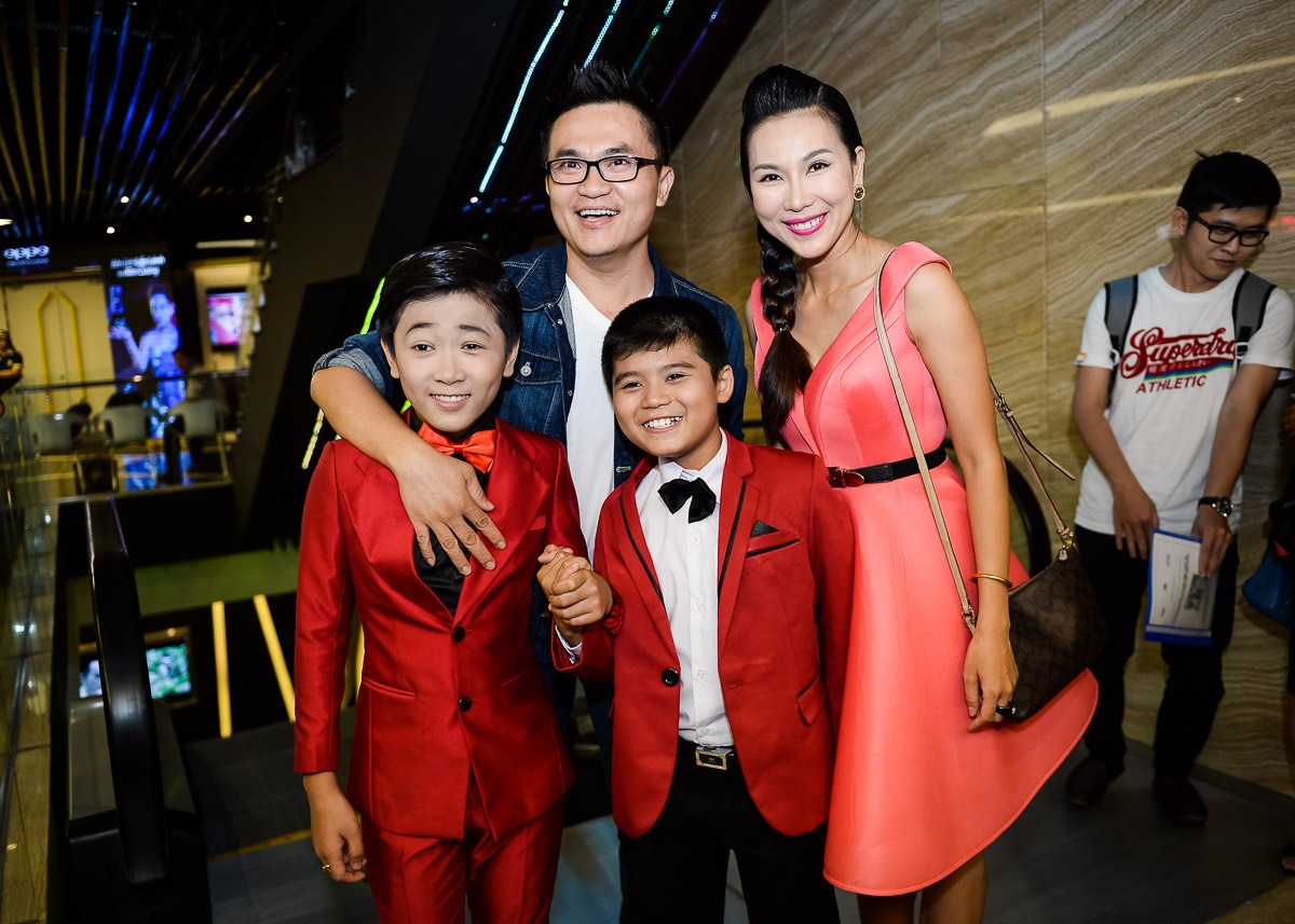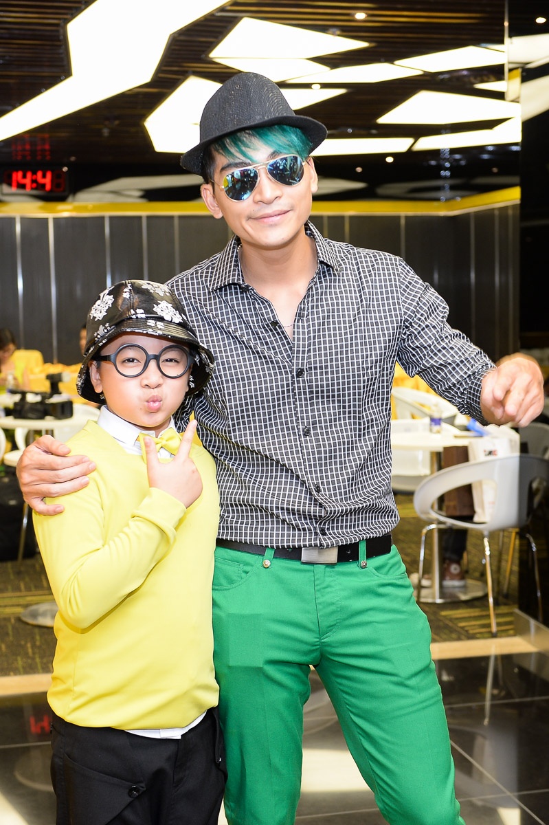Khánh Ngọc bắt cặp cùng bé Gia Quý (ngoài cùng bên trái). Cậu bé có năng khiếu diễn hài và từng xuất hiện trong các tiểu phẩm của những nghệ sĩ tên tuổi. |
