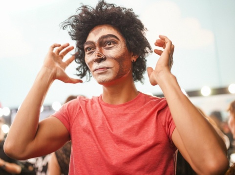 Phương Mỹ Chi hớn hở khi được "hô biến" làn da màu. |