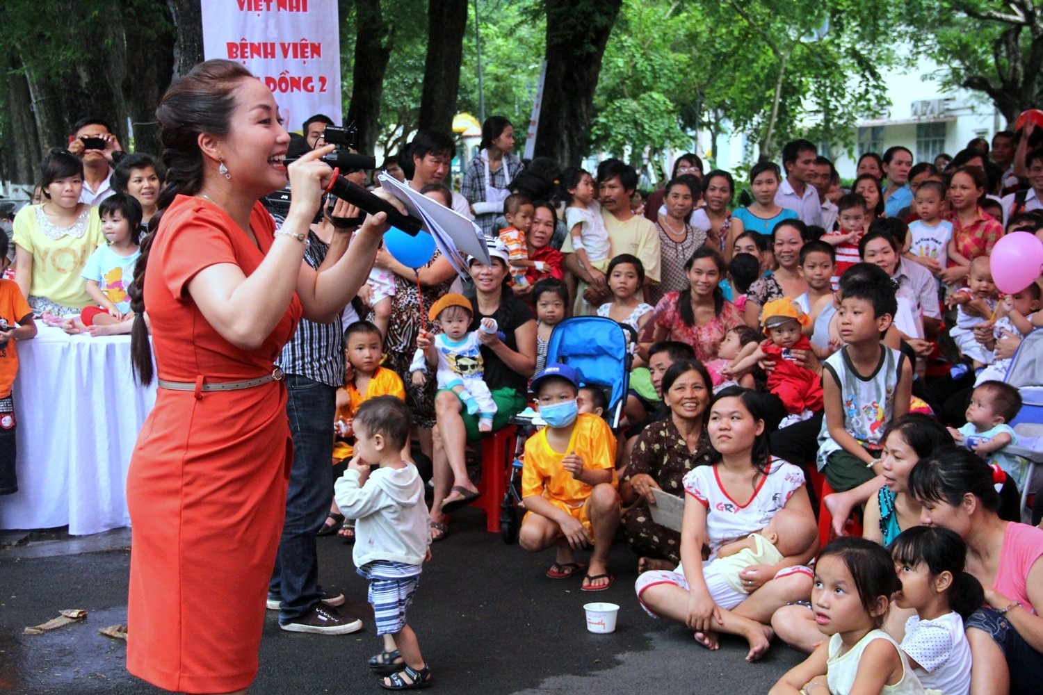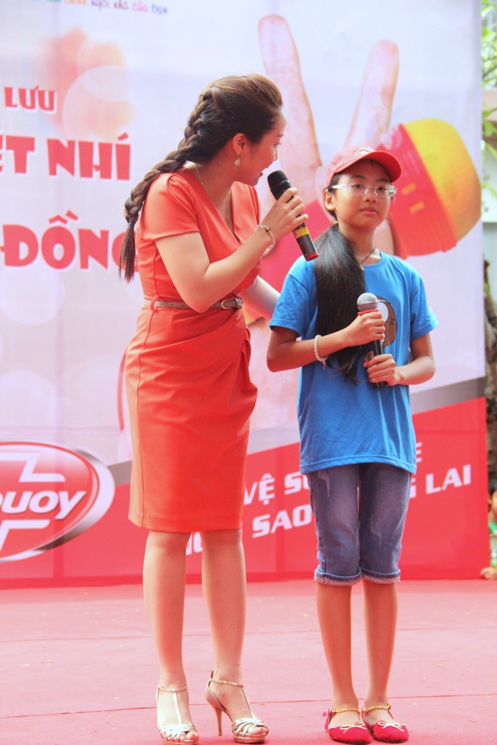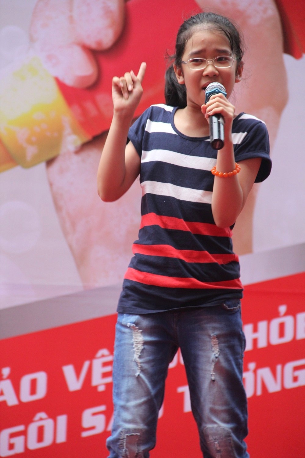 | Tận mắt nhìn thấy nỗi đau của các bệnh nhi, các bạn nhỏ của chương trình Giọng hát Việt nhí không giấu được xúc động, cô bé hát dân ca Phương Mỹ Chi chia sẻ trong buổi giao lưu: “Khi đến thăm và được chứng kiến hoàn cảnh của các em, con cảm thấy mình thật may mắn và thấy thương các em cũng như thương mẹ của các em nữa. Con mong các em có thêm niềm tin để vượt qua bệnh tật và khỏe mạnh trở lại”. |