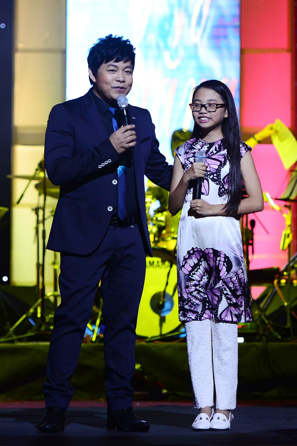 | Trong liveshow lần này, Phương Mỹ Chi có dịp đứng chung sân khấu cùng cha nuôi của mình - nam ca sĩ hải ngoại Quang Lê. |