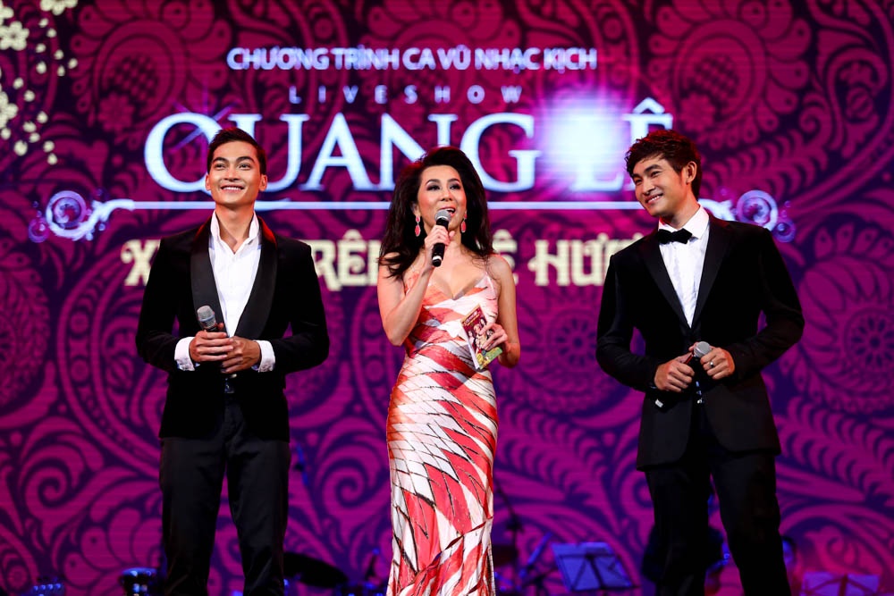 | Quang Lê trở lại sân khấu và trình diễn các nhạc phẩm như Mừng tuổi mẹ, Biển tình, Bài ca Tết cho em... |