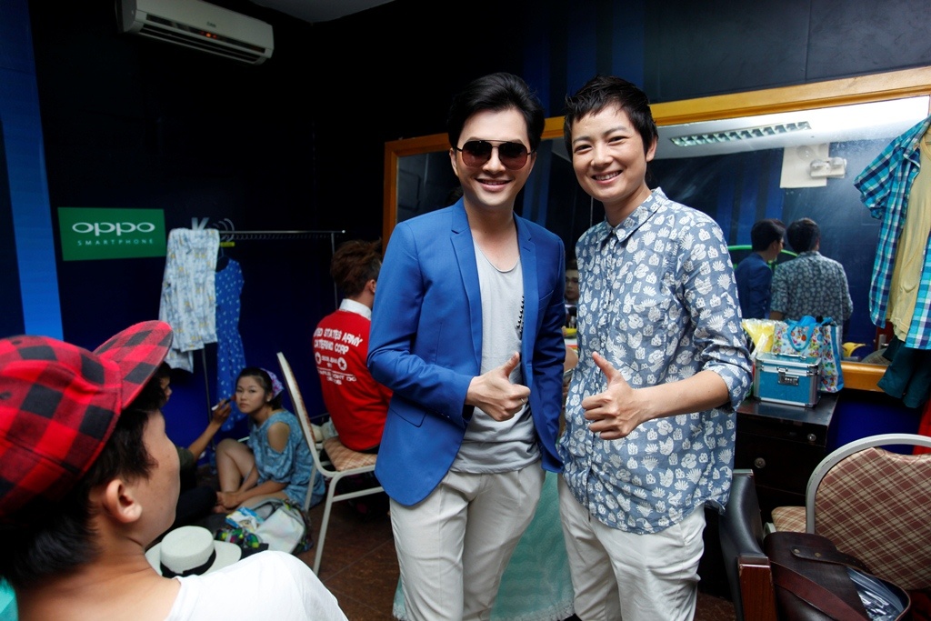 | Trong hậu trường, "bà bầu" Thúy Vinh tạm gác công việc để tới ủng hộ cho ca sĩ Nam Cường. |