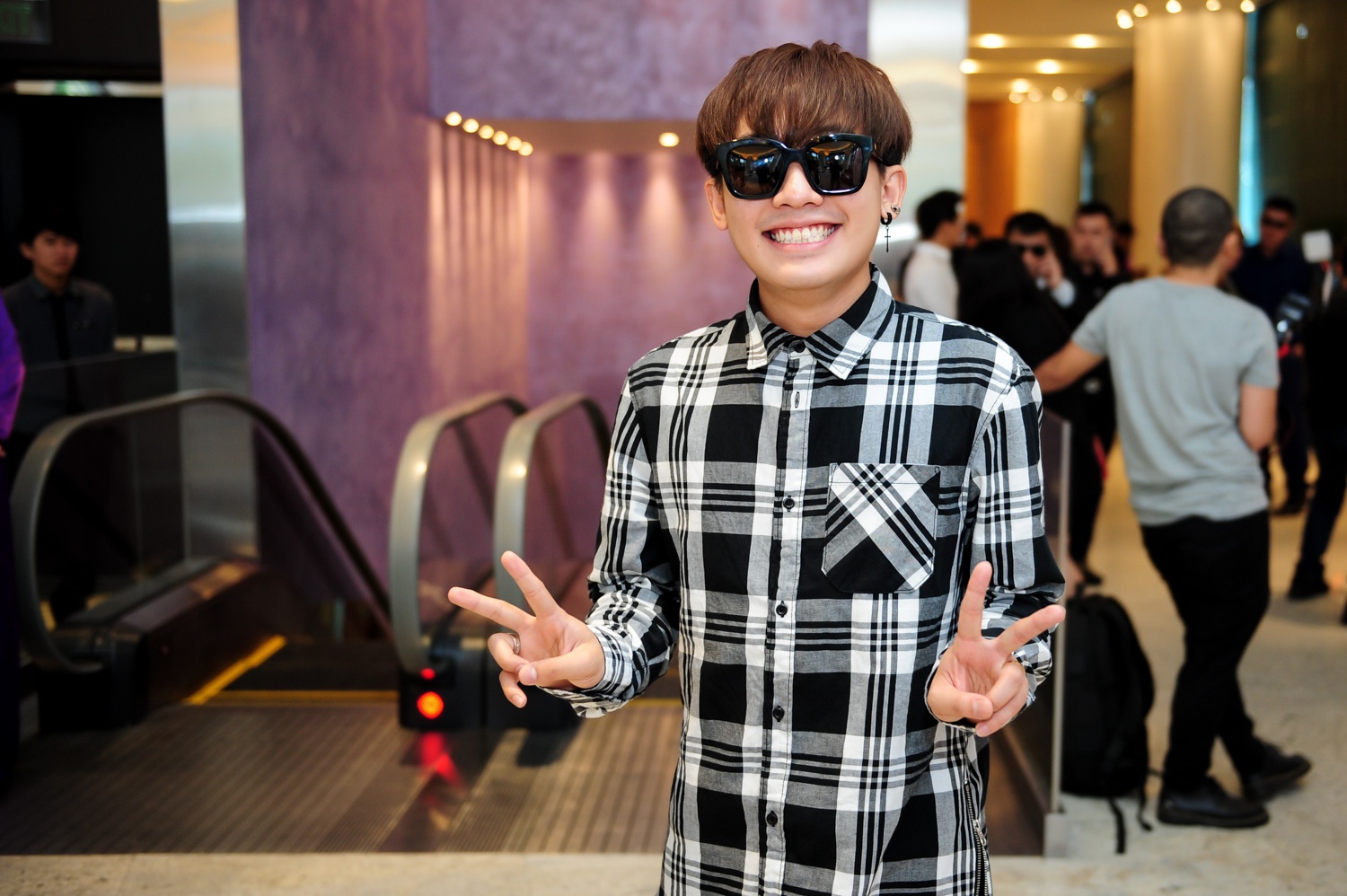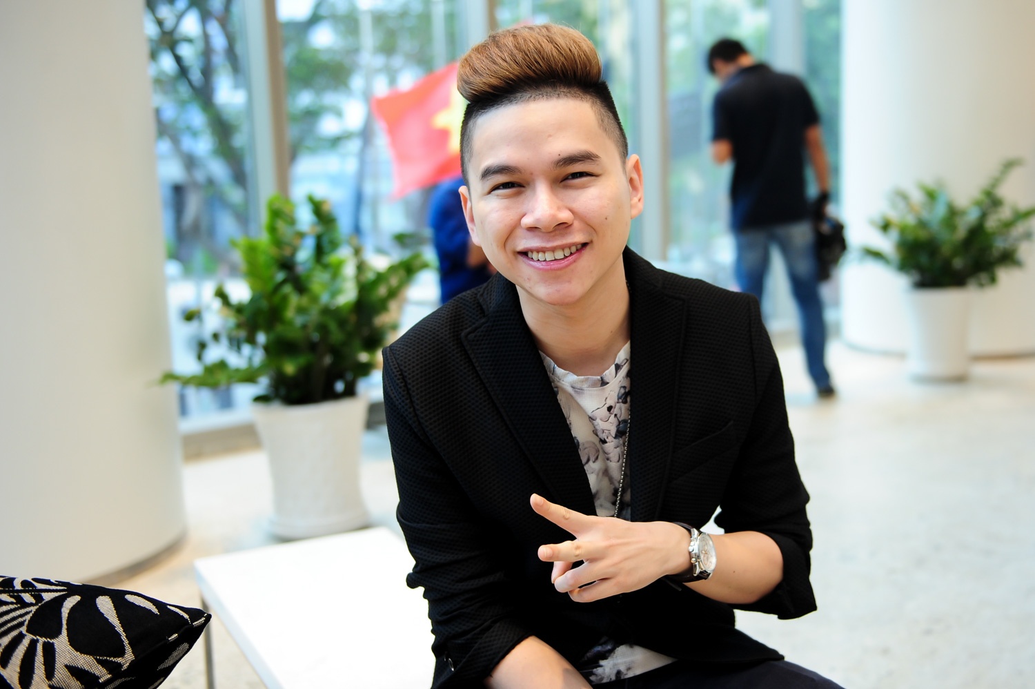 | Nam ca sĩ Hoàng Tôn cũng tranh thủ có mặt ở sự kiện. Anh đang là thí sinh cuộc thi Tuyệt đỉnh tranh tài. |
