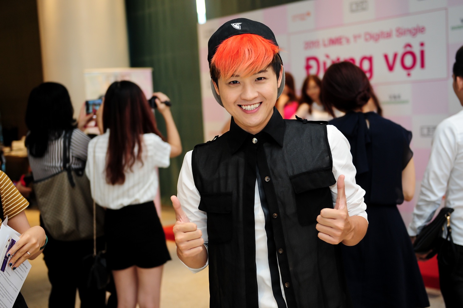 | Sự kiện ra mắt quy tụ nhiều nghệ sĩ trong làng giải trí. Thanh Duy cá tính với mái tóc hồng. |