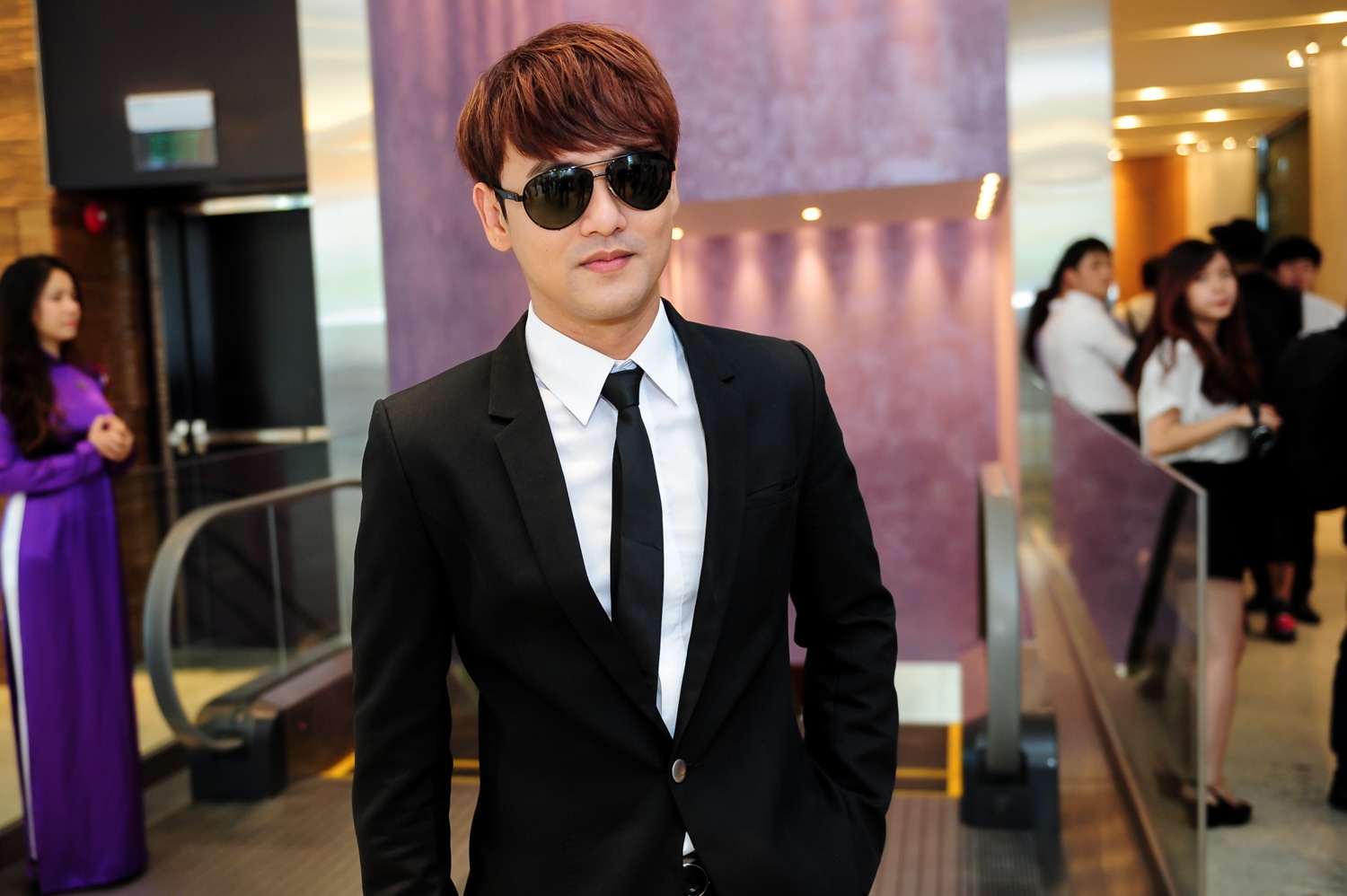 | Nam ca sĩ Ưng Đại Vệ ăn vận lịch lãm khi dự buổi ra mắt nhóm nhạc đàn em. |