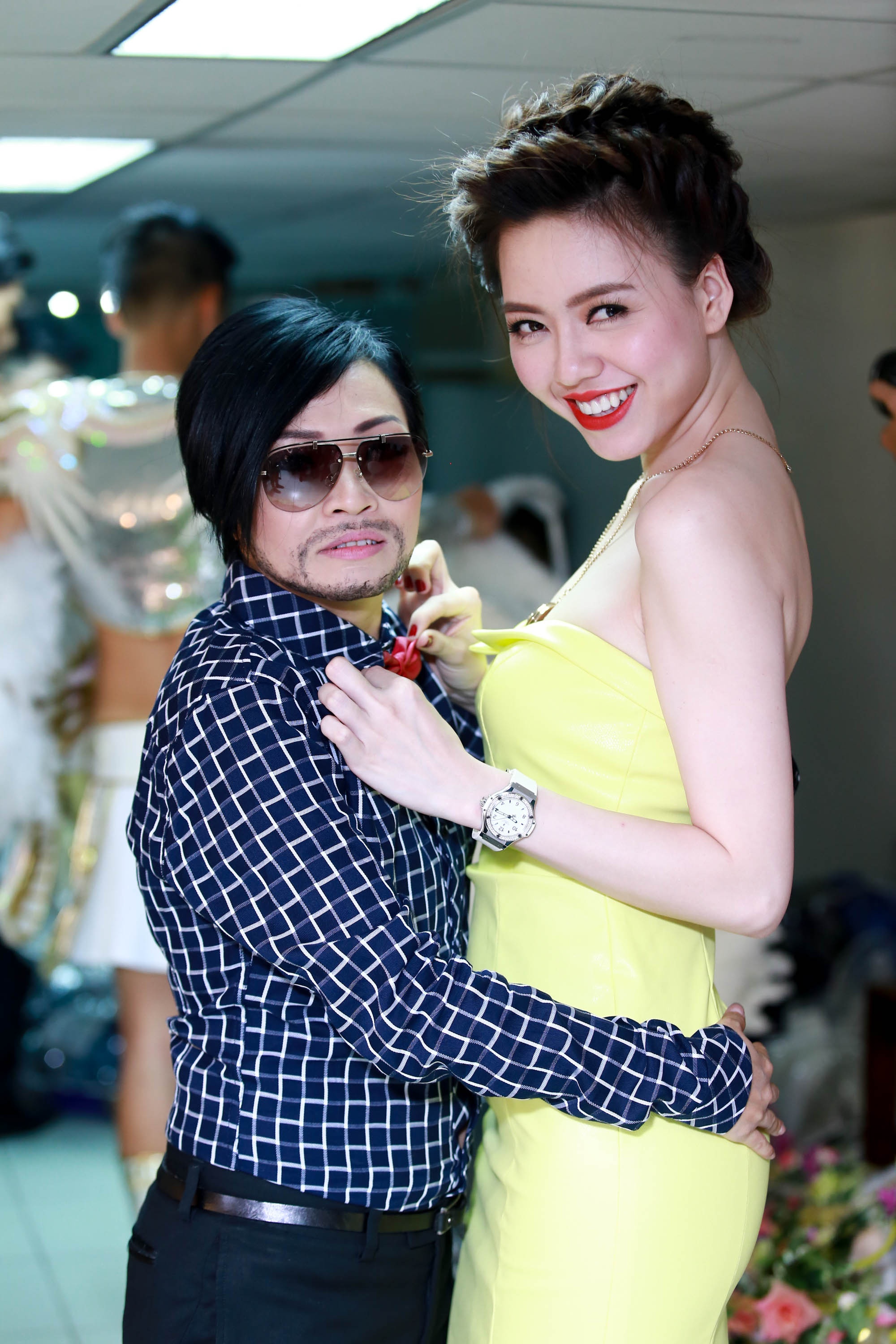 Vì đang vào vai một đại gia, nên Phương Thanh không ngần ngại vòng tay ôm người đẹp Vũ Hoàng Điệp vào lòng.