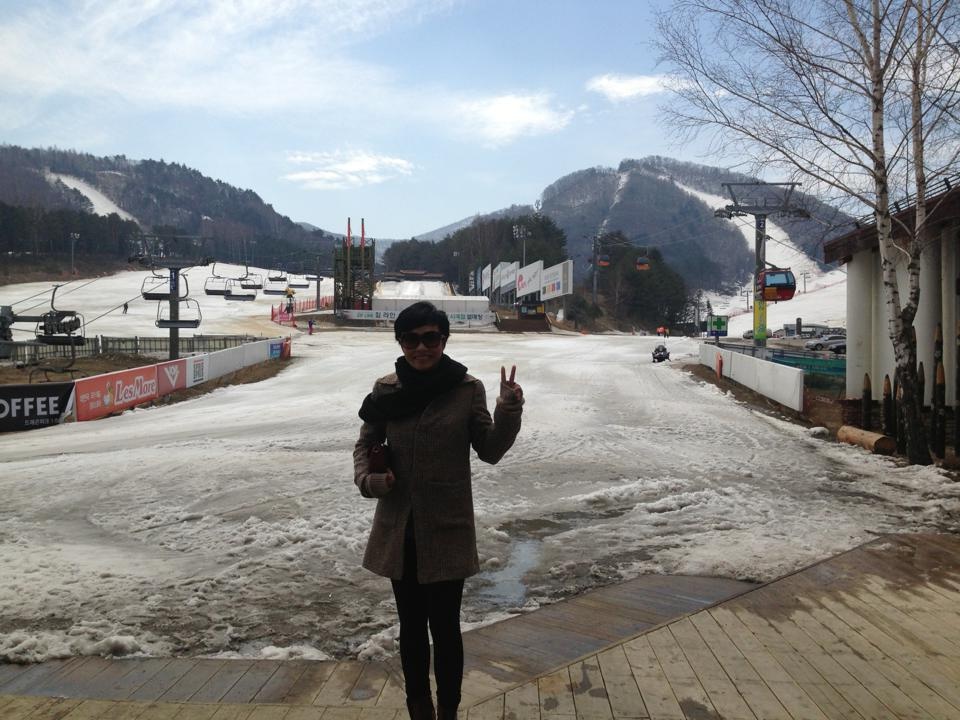 Phương Thanh xì tin tại khu trượt tuyết nổi tiếng Dragon Castle.