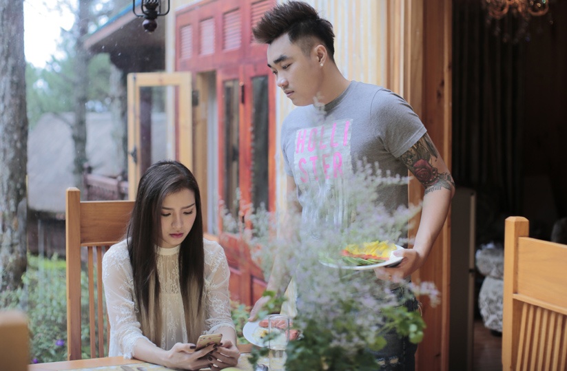 | Phương Trinh Jolie và bạn diễn điển trai trong MV được quay tại Đà Lạt. |