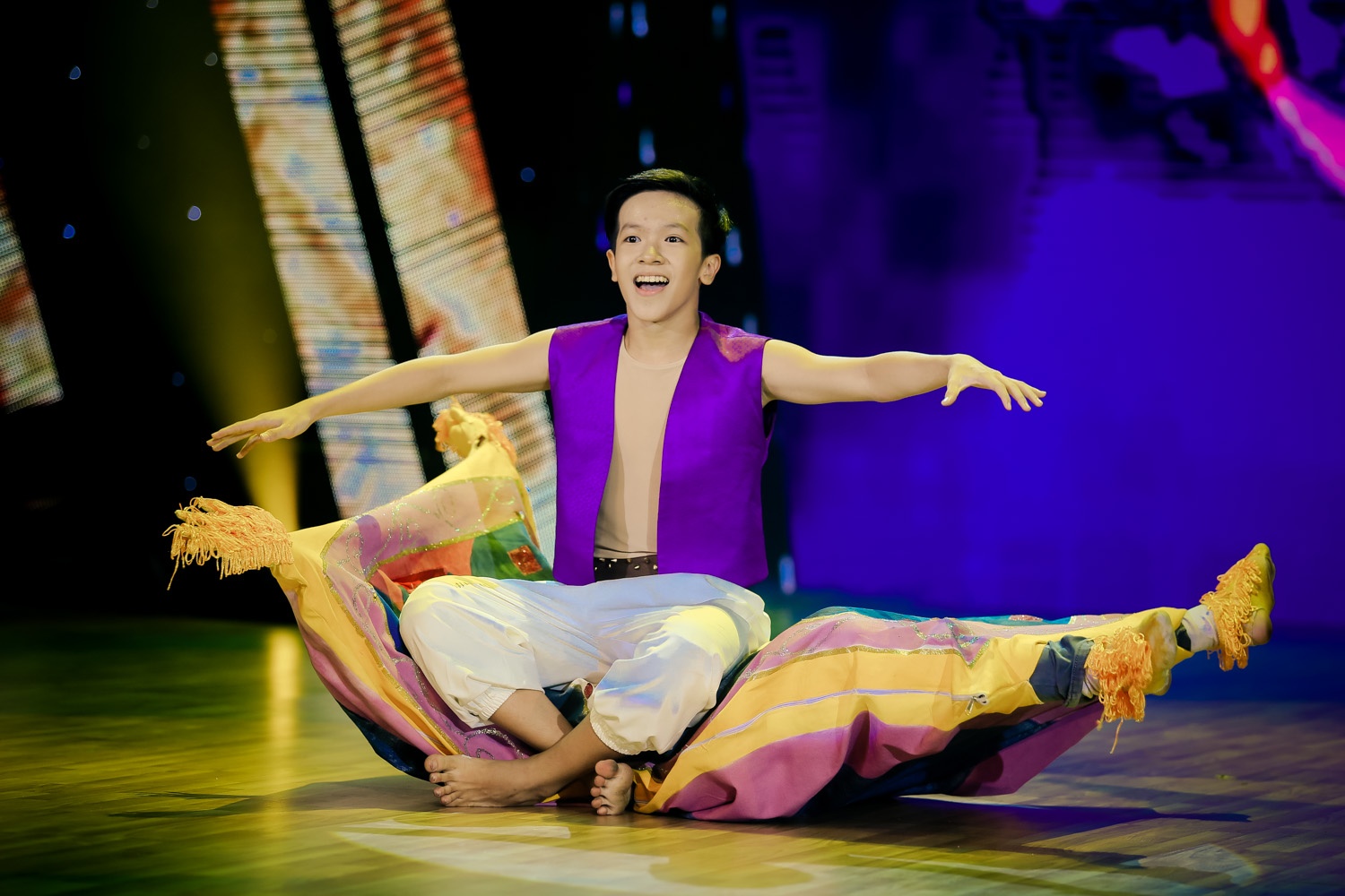 Thí sinh Đăng Khoa hoá thân thành Aladin trong chuyện Nghìn lẻ một đêm. Với tiết mục nhảy popping, Đăng Khoa mang đến sự vui tươi và sôi động cho cả khán phòng.