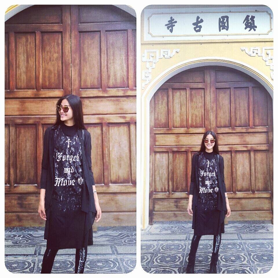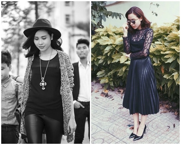 | Một ngày khác, người đẹp chọn tông đen tuyền và sử dụng cách mix layer thông minh với những gam màu đồng điệu. |
