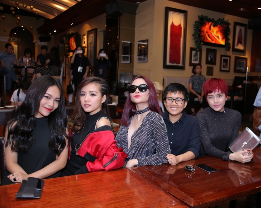 | Phương Uyên là người giúp đỡ chị em Thiều Bảo Trang bước vào showbiz. Những sản phẩm âm nhạc của nhóm đều do nhạc sĩ cá tính sáng tác và sản xuất. Trong ảnh, cựu giám đốc âm nhạc The Voice bên quán quân Vũ Thảo Nhi, hot girl Phương Ly, Bảo Trang và Bảo Trâm (từ trái qua). |
