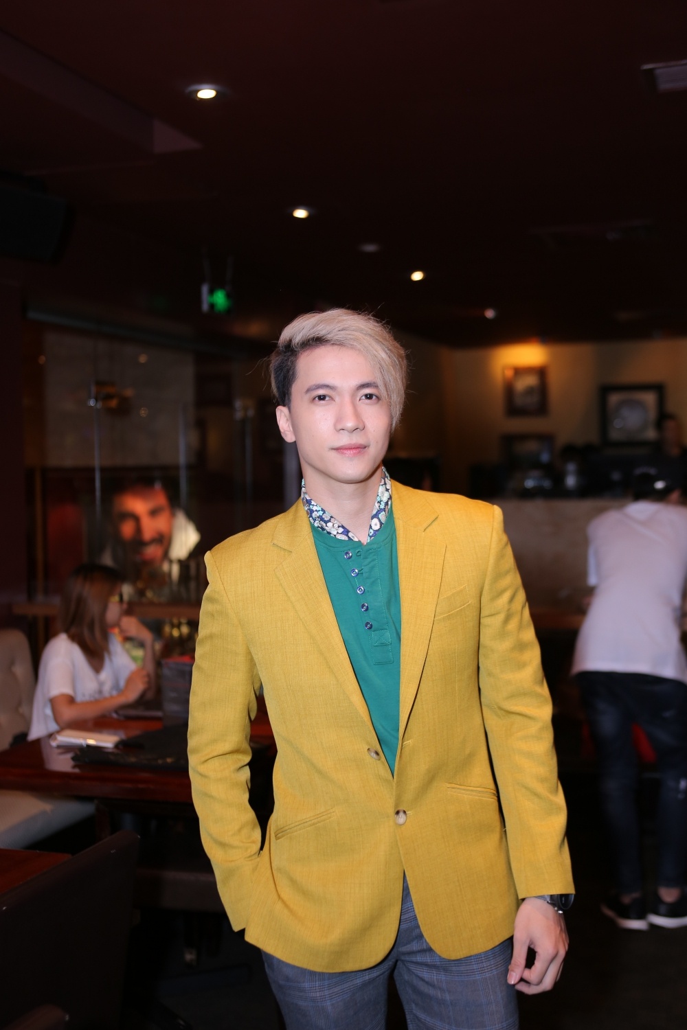 | S.T nhóm 365 nổi bật khi kết hợp áo thun xanh và vest màu vàng. |