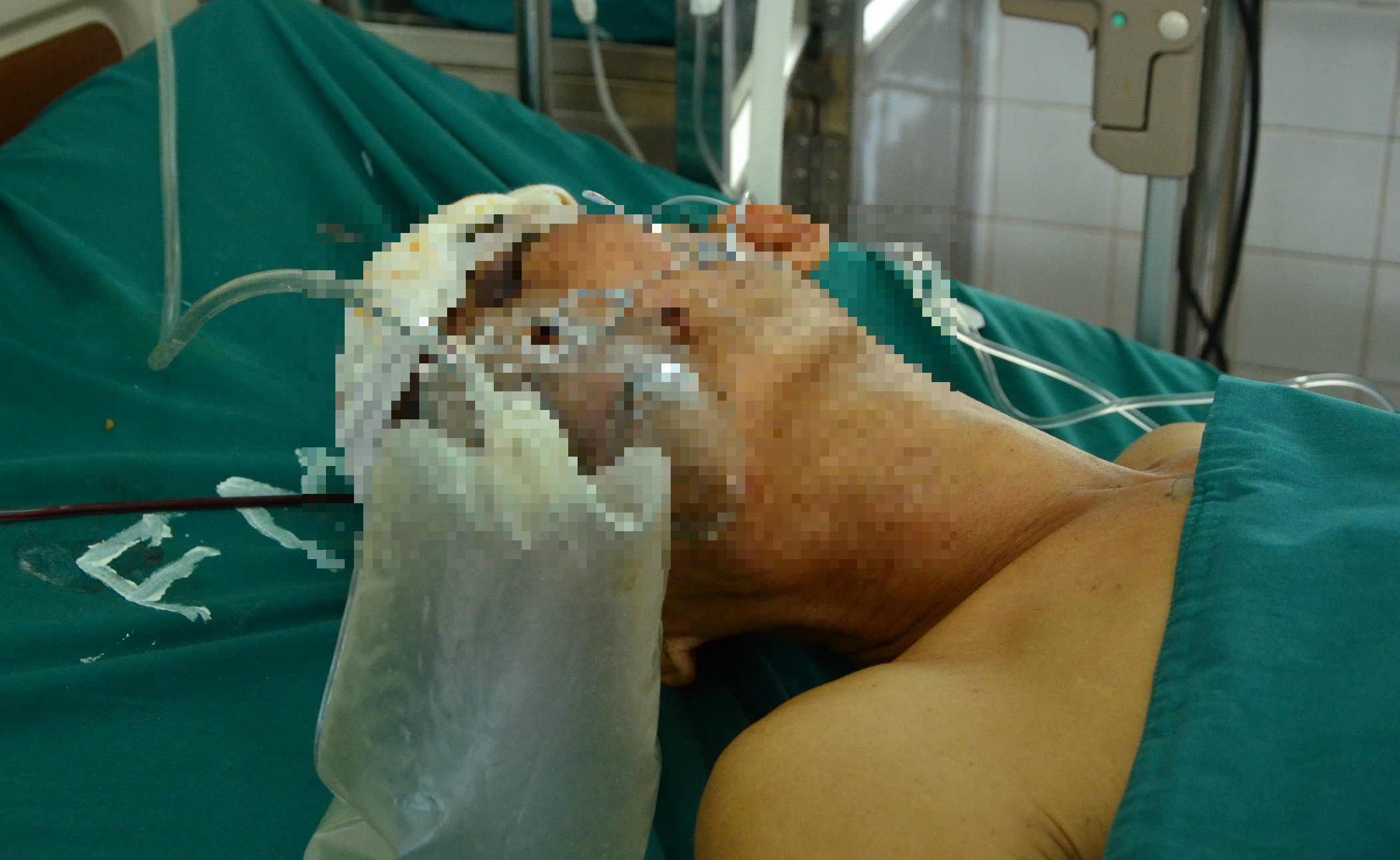 | Ông Hoàng đang được cấp cứu tại bệnh viện. Ảnh: Khải Hoàng. |