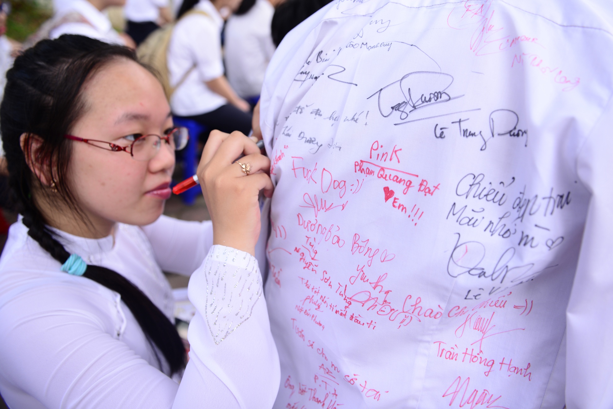 | Áo trắng học trò đã được phủ kín bới những dòng lưu bút. |