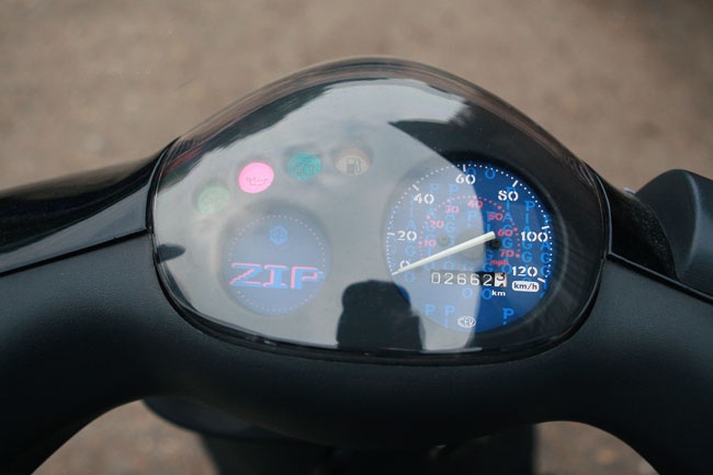 | Mặt đồng hồ hiển thị trung tâm được thay mới, tuy nhiên sẽ đẹp hơn nếu như chiếc xe được sử dụng cụm đồng hồ Zip 125 phiên bản có màn hình LCD |