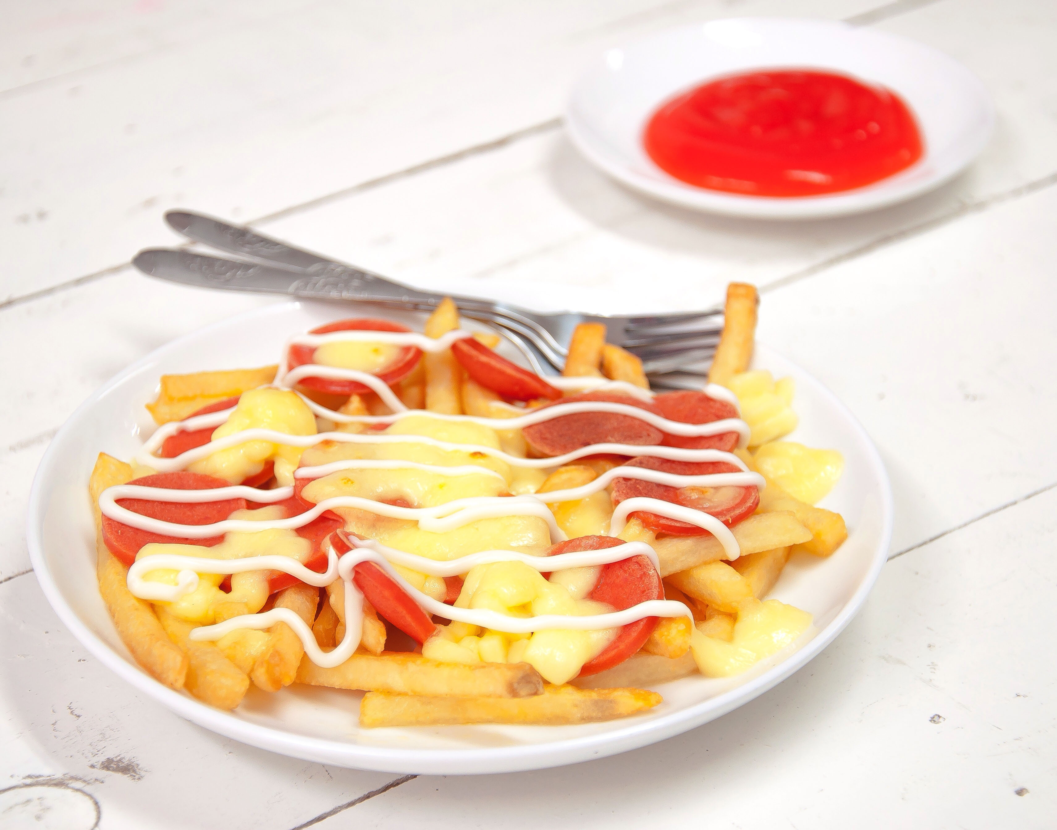 Khoai tây pizza của quán gồm những cọng khoai tây chiên bơ vàng ươm, giòn tan được sắp xếp một cách ngẫu nhiên trên chiếc đĩa nhỏ. Phía trên khoai tây, người ta rải đều những miếng xúc xích xắt mỏng, miếng phô mai nhỏ cùng vài đường phô mai đẹp mắt. Công đoạn cuối cùng là cho chiếc đĩa đựng tất cả nguyên liệu trên vào lò và nướng. Dưới sức nóng của lò, những miếng phô mai mềm ra, gắn kết khoai tây, xúc xích và làm thành chiếc bánh pizza với ba màu trắng, vàng, đỏ đẹp mắt, ngon miệng cùng hương thơm khó cưỡng.